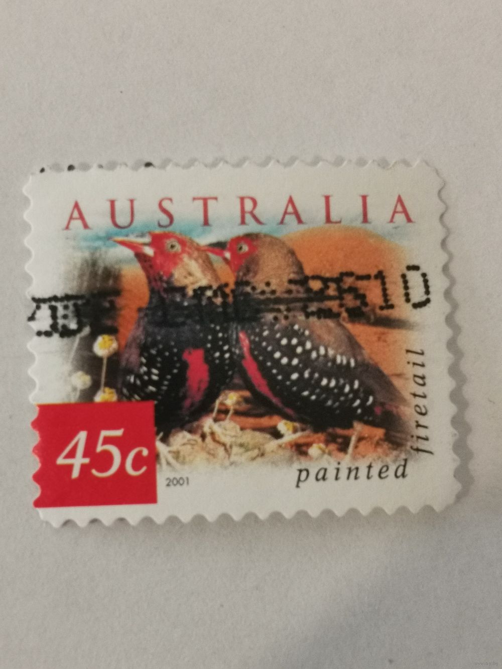 Марка из серии "Птицы пустыни" - Расписной астрильд (Emblema pictum)