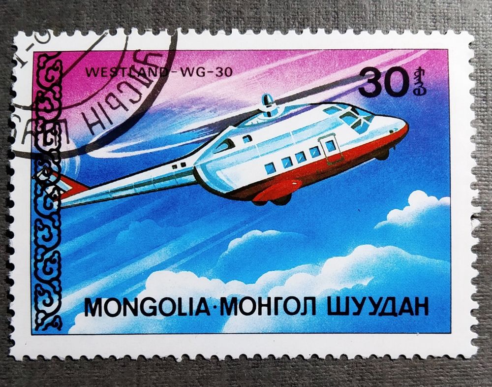 Марка Монголия 1987 год Вертолет