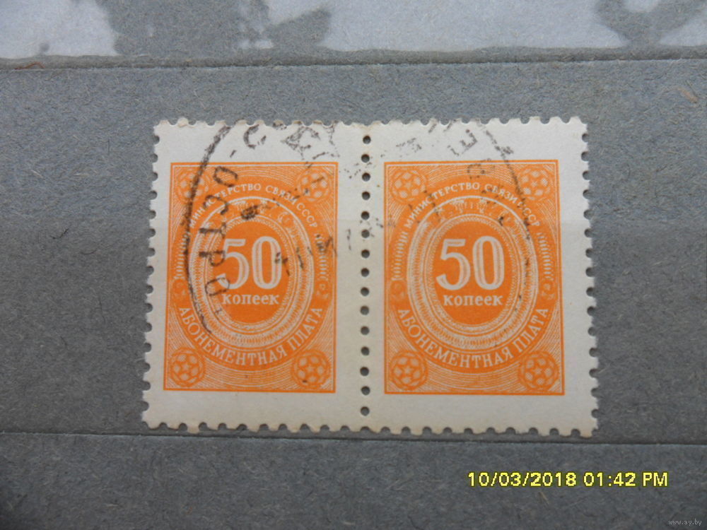Марка непочтовая 50 копеек Министерство связи СССР, 2шт абонентская плата штемпель