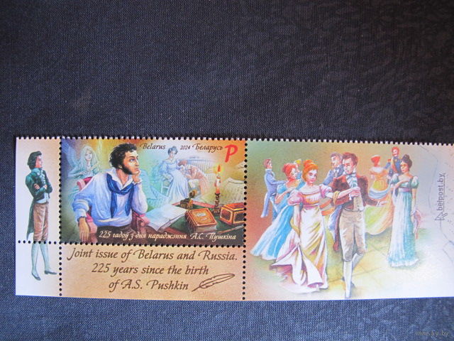 Марка РБ 1577. 225 лет со дня рождения А.С. Пушкина + купон