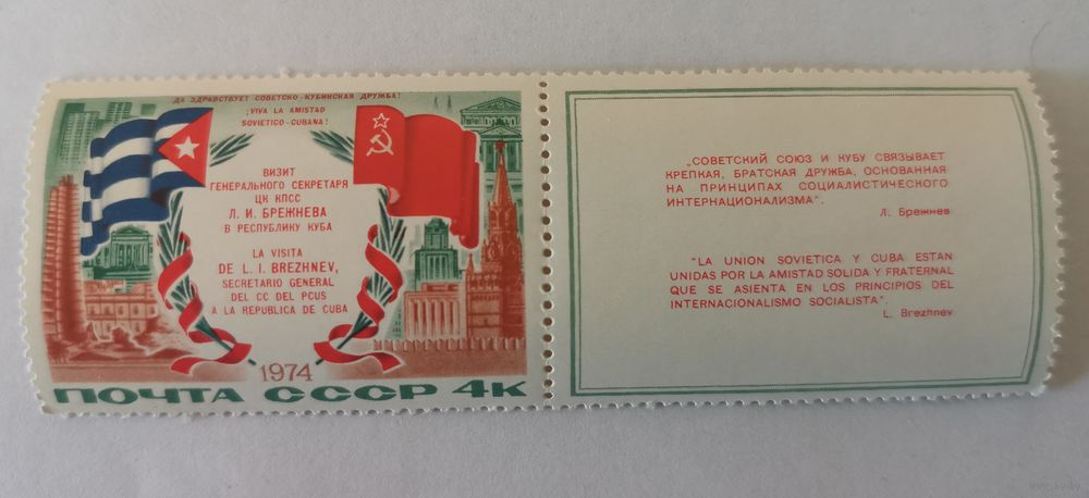 Марка с купоном Визит Л.И.Брежнева в Республику Куба