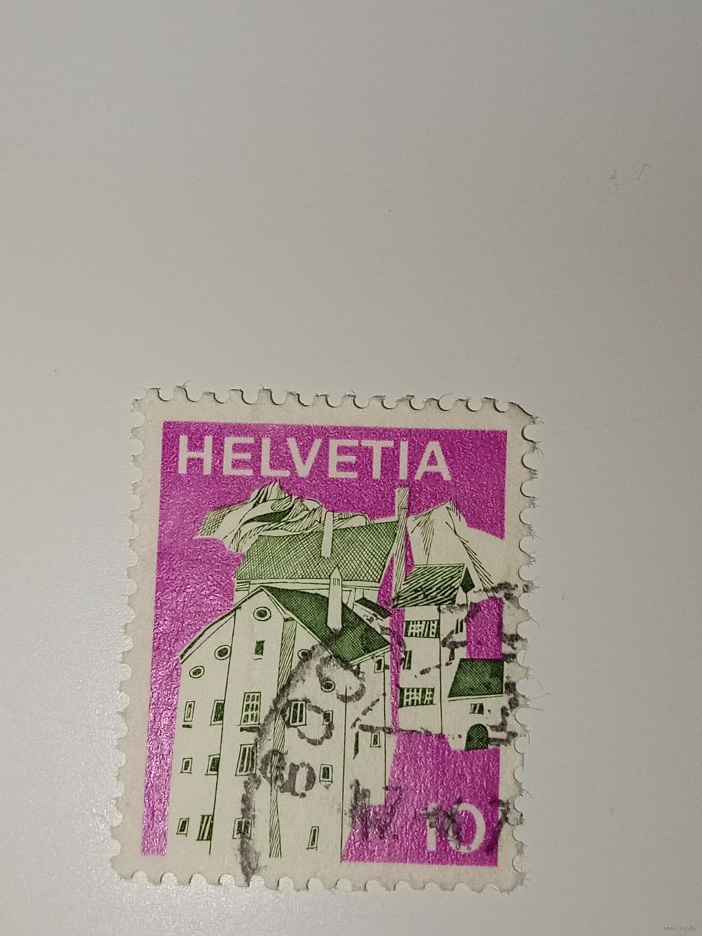 Марка Швейцария 1973 год деревня Шплюген в кантоне Граубюнден.
