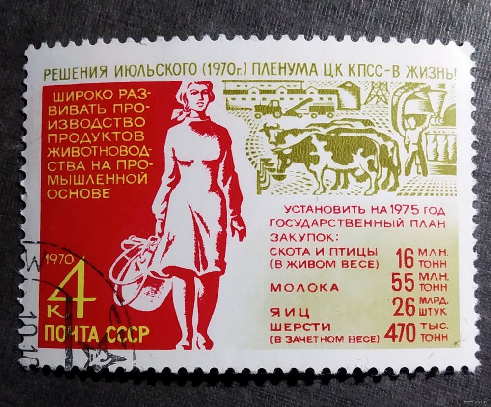 Марка СССР 1970 год Решения пленума ЦК КПСС - в жизнь!