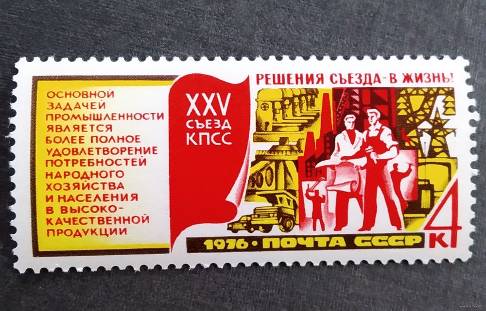 Марка СССР 1976 год Решения съезда - в жизнь!