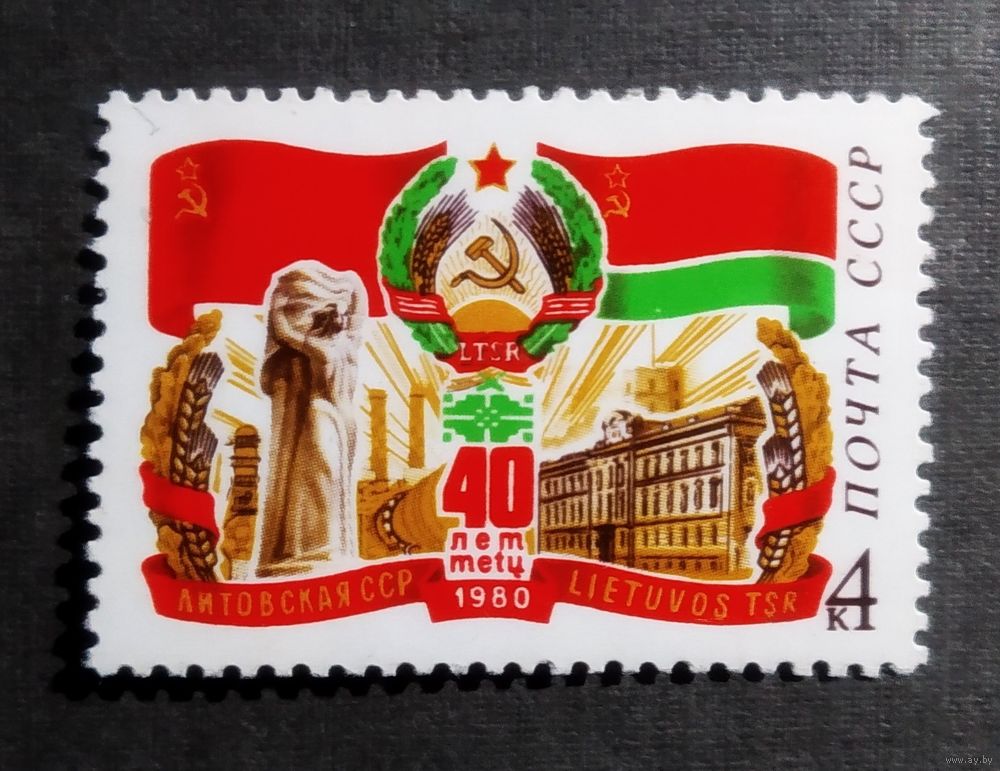 Марка СССР 1980 год 40 лет Литовской ССР