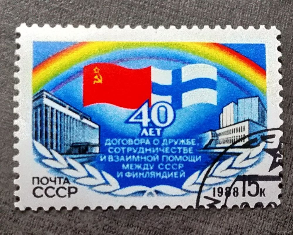 Марка СССР 1988 год 40 лет Договора между СССР и Финляндией