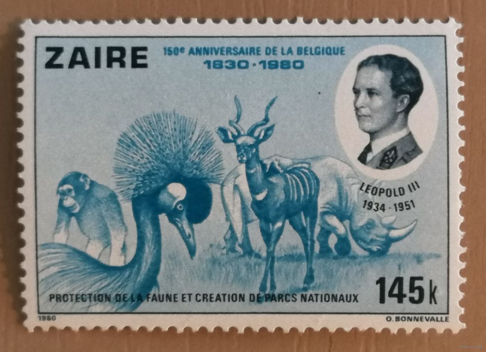 Марка Заир, Конго, 150 лет независимости Бельгии, создание национальных парков,, 1980 г.