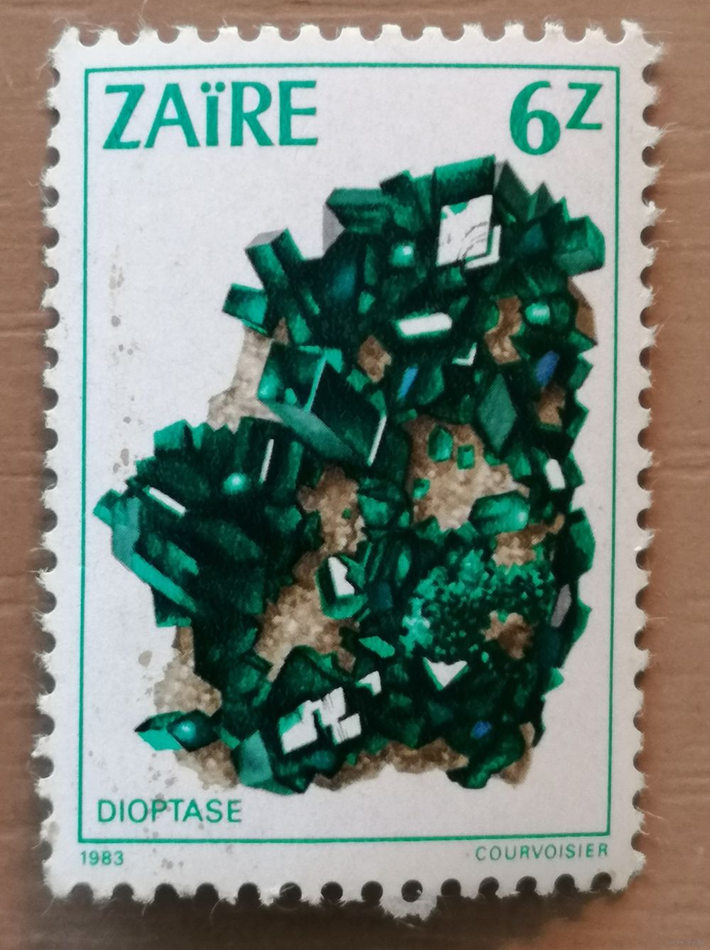 Марка Заир, Конго, серия - минералы, диоптаз, 1983 г