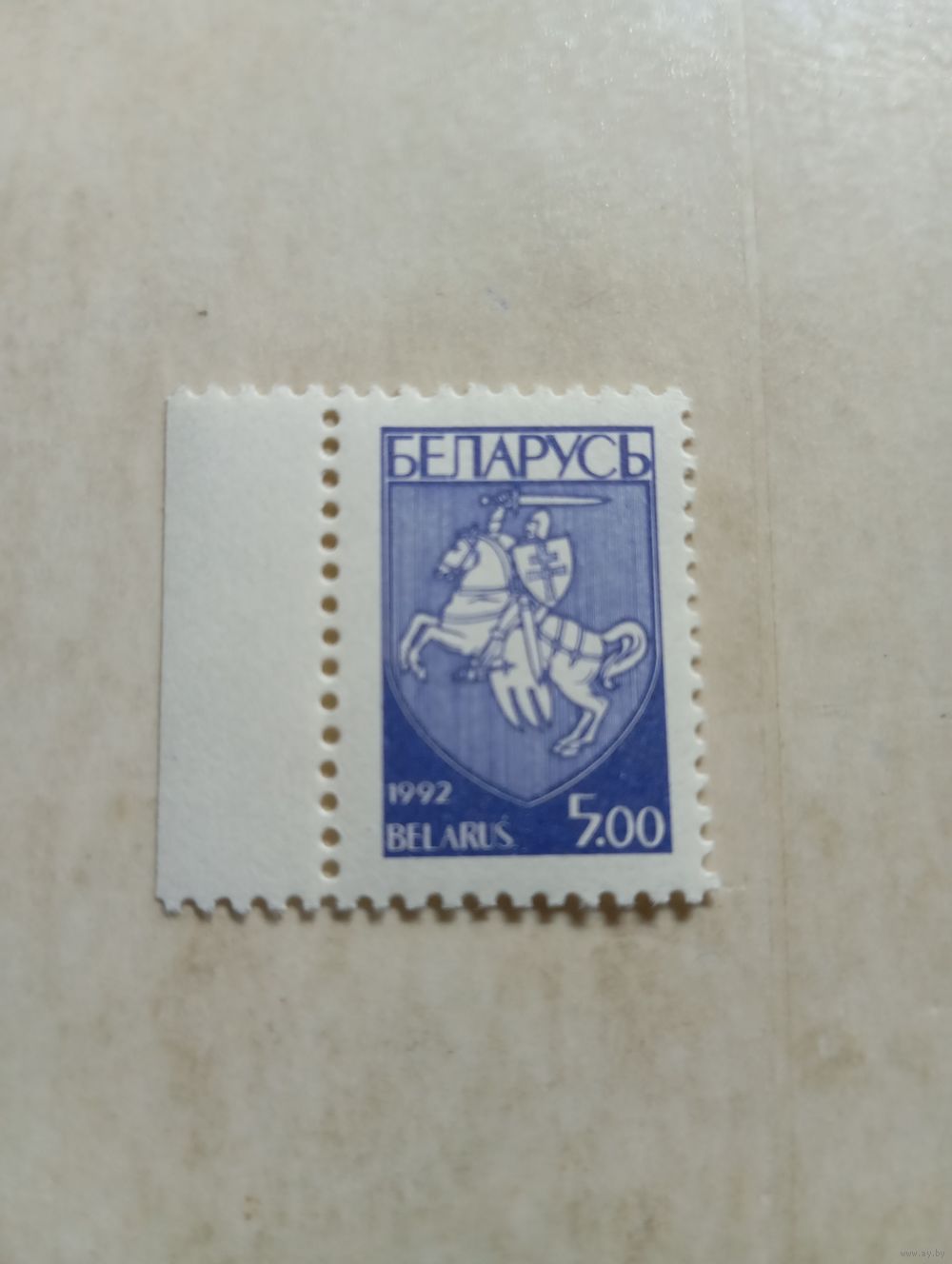 Марки Беларусь. Герб погоня. 5 руб. 1992 год