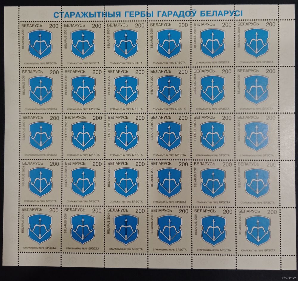 Марки Беларуси 2001, геральдика, чистый лист герб Бреста, КМ 408