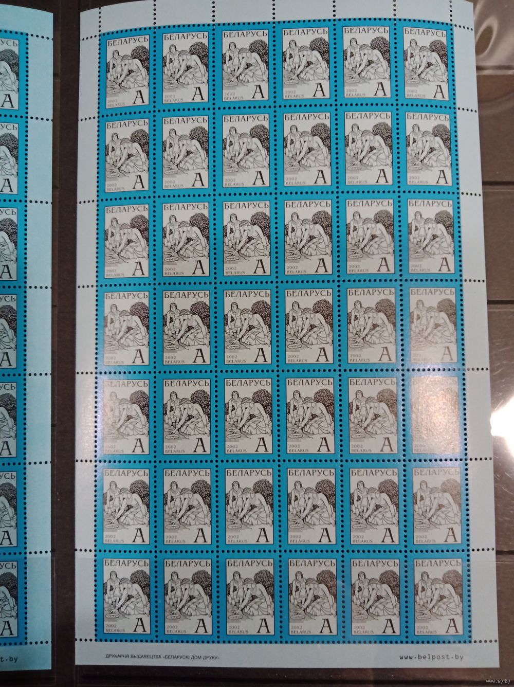 Марки Беларуси 2002, Четвёртый стандарт литера А, светлый фон, различие по перфорированию листа, чистый, КМ 465 высокий каталог