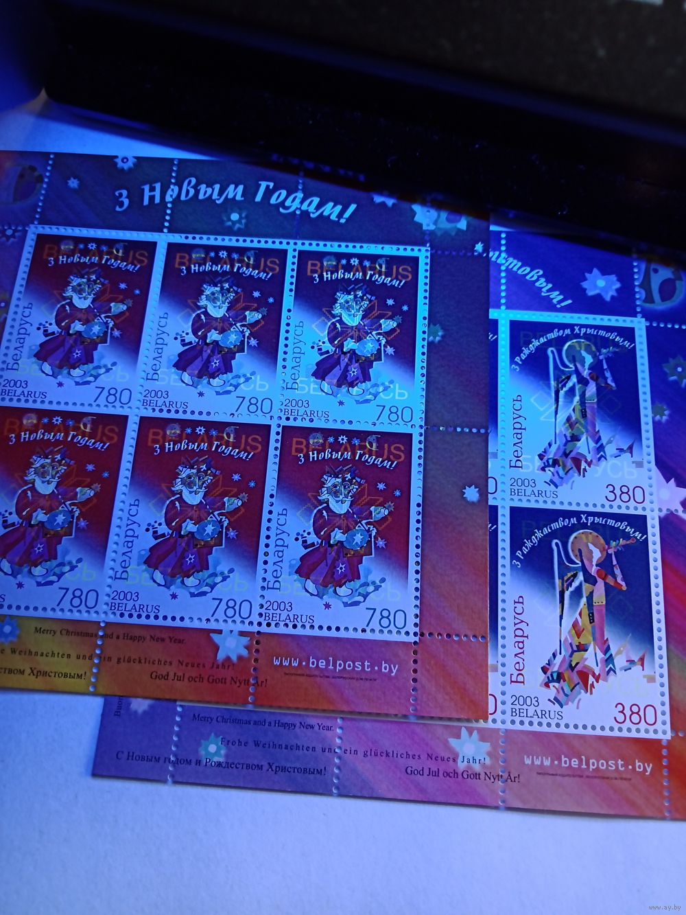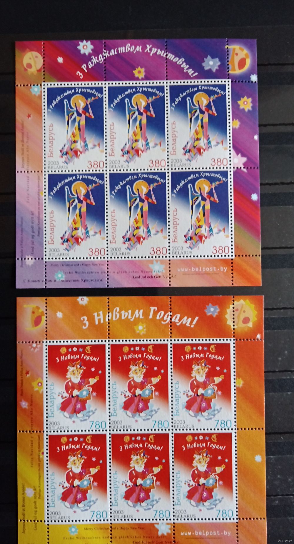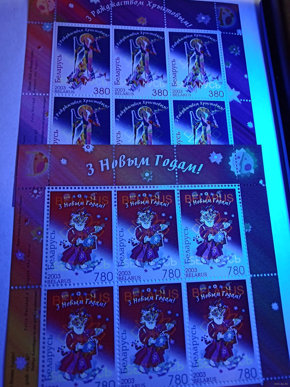 Марки Беларуси 2003 года С Рождеством Христовым серия в листах КМ 533 - 534 ПРЯМАЯ UF ЗАЩИТА