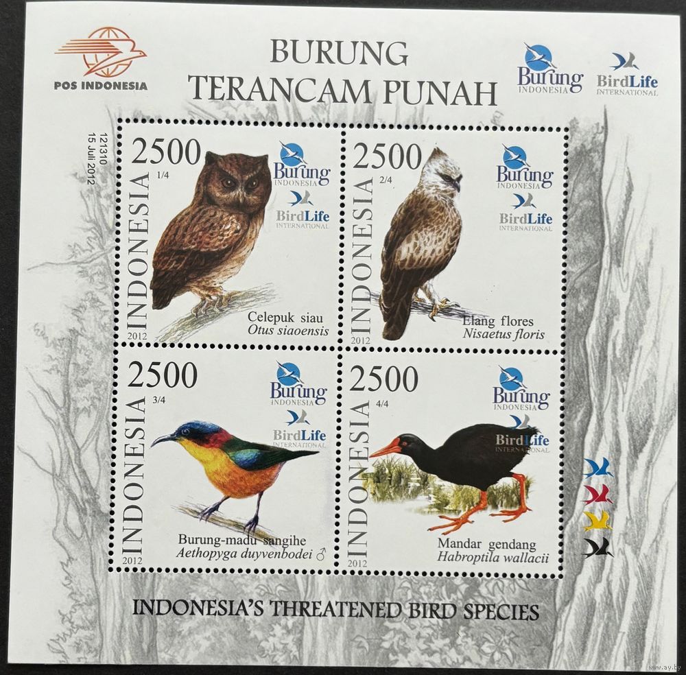 Марки Индонезия 2012 Фауна Птицы MNH