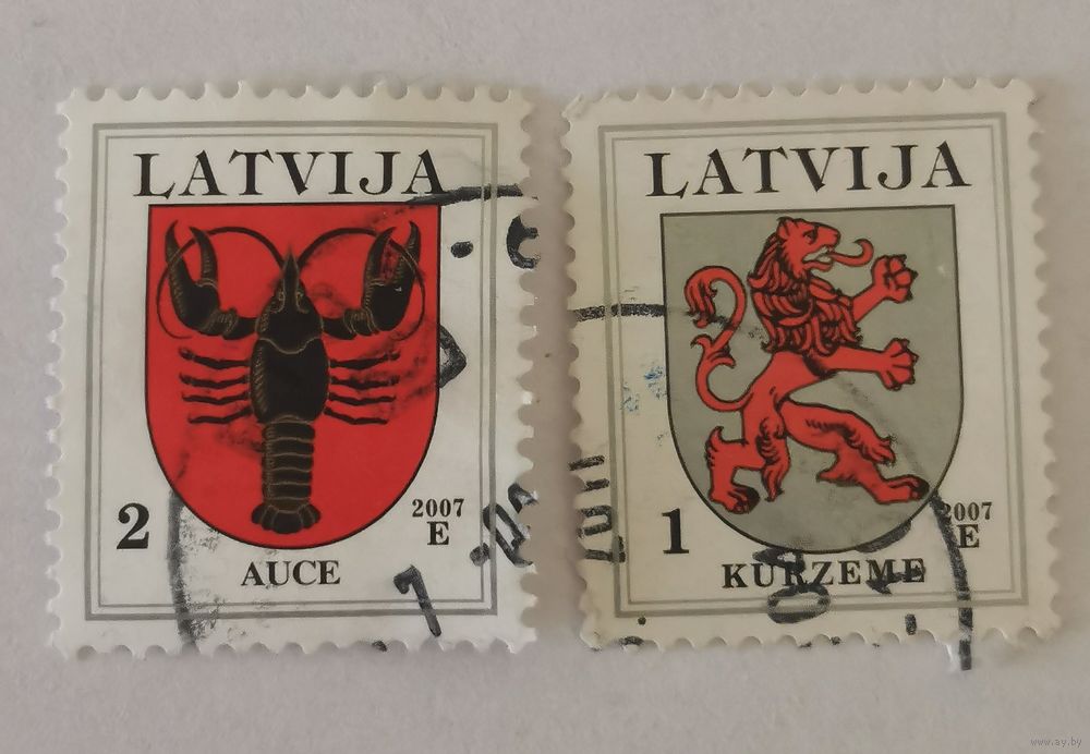 Марки из серии "Гербы" с надпечаткой 2007 - герб Курземе и герб Ауце