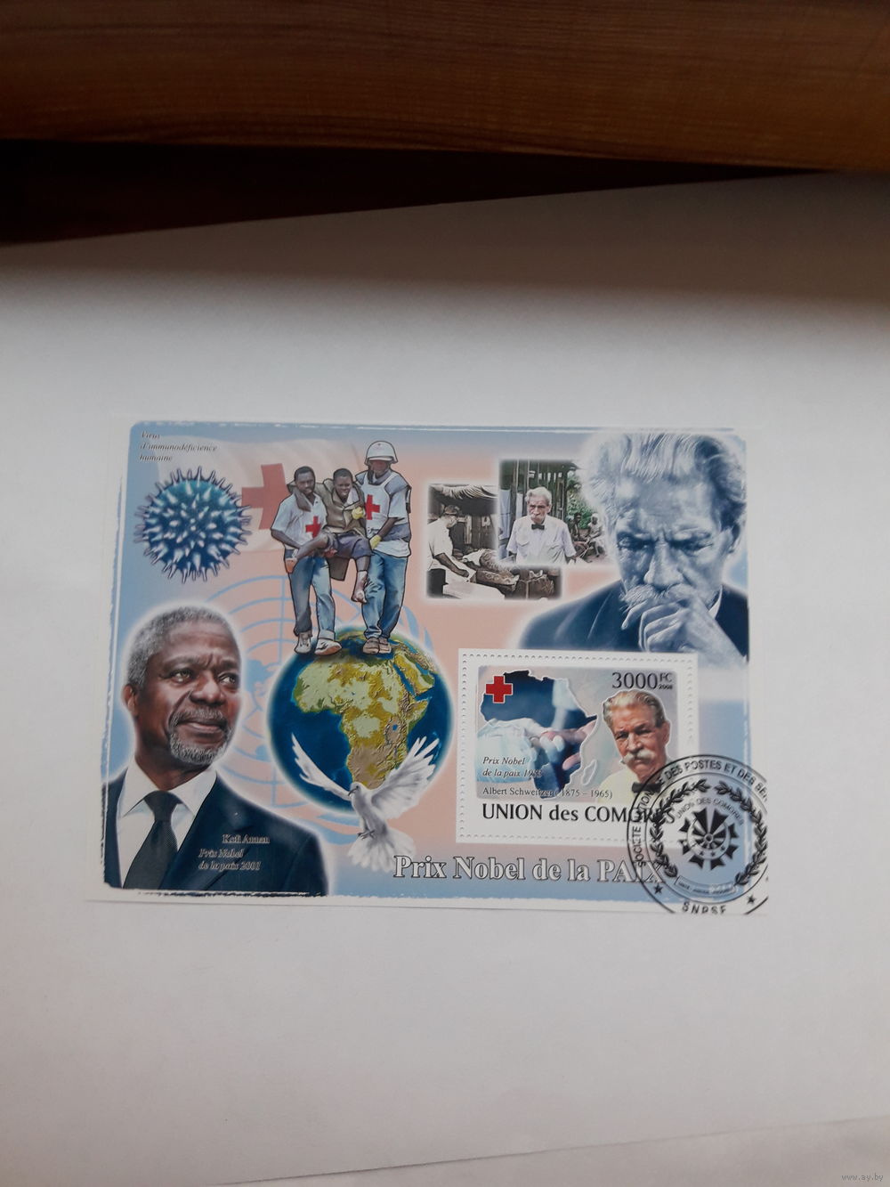 Марки Коморские о-ва (А Швейцер Лауреат Нобелевской премии Мира 1952)
