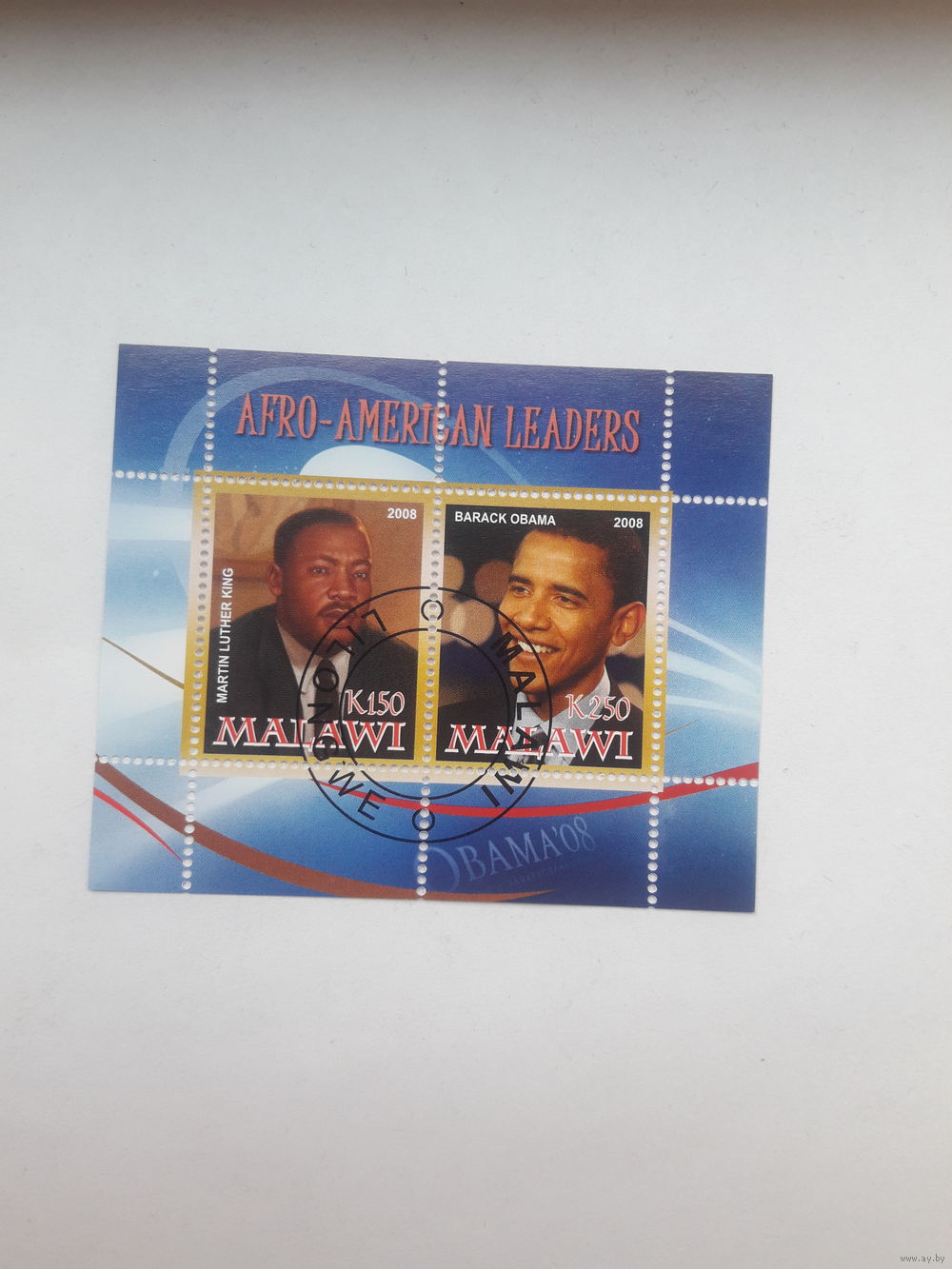 Марки МАлави Лауреат нобелевской премии Мира 1964 М Л Кинг 2009 Б Обама
