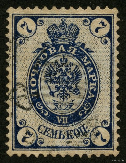 7 копеек, 1905 г.. Вертикальный водяной знак. Использована. Лёгкое гашение. PSE grading scale - XF. Отличный сохран.