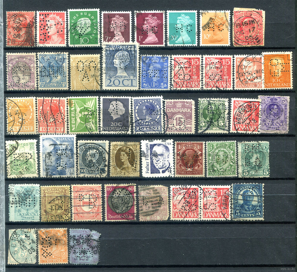 Марки разных стран 1 - перфины - 40+ марок - гашёные. #O-W-86-B-1
