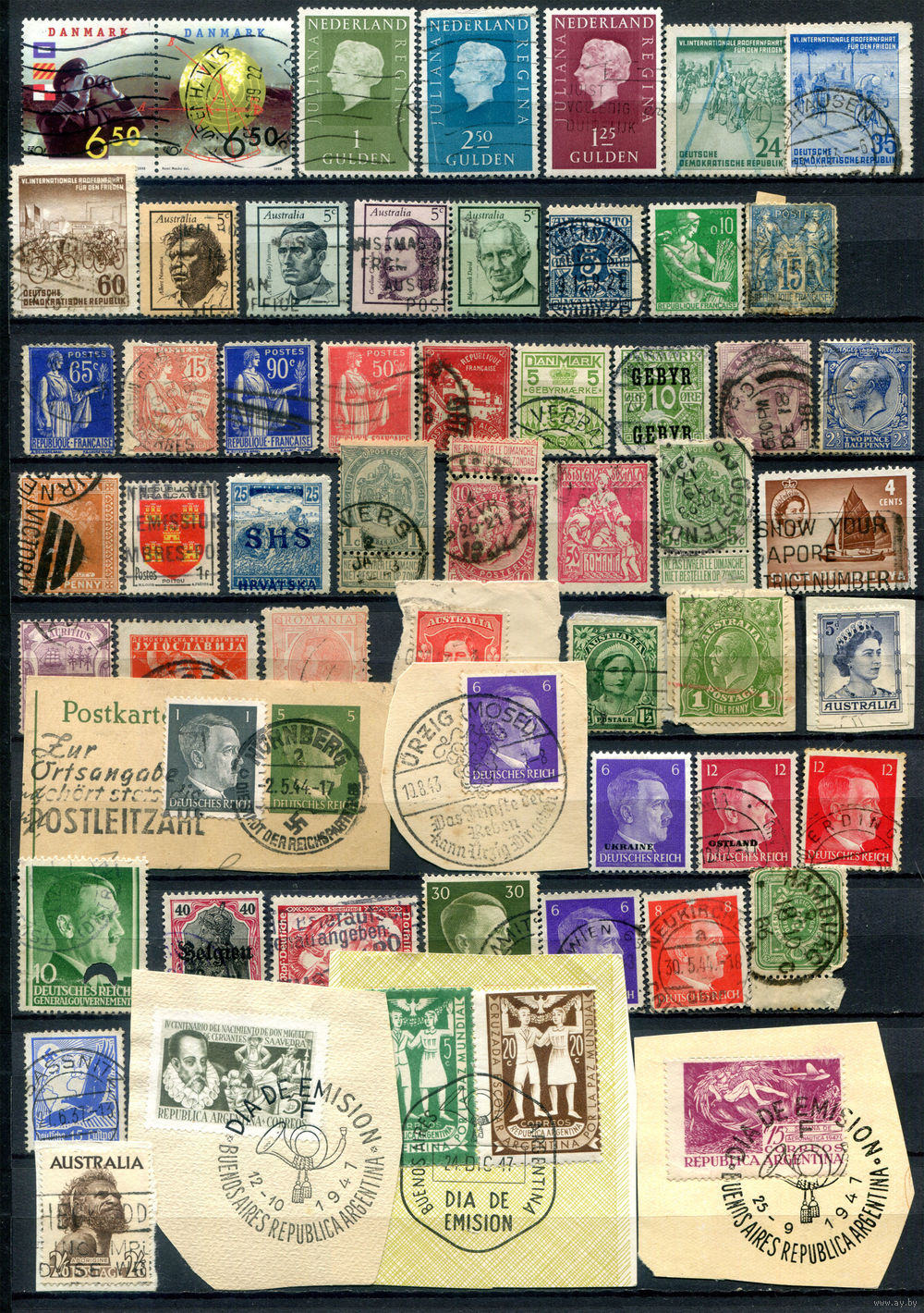 Марки разных стран 2 - г. - - 50+ марок и почтовых вырезок - гашёные. #O-W-88-B-2