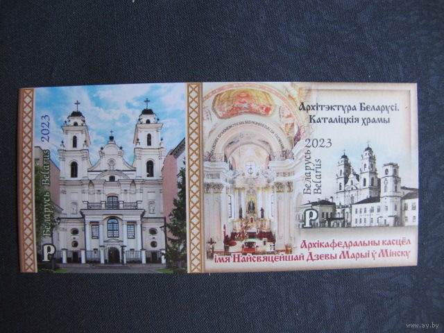 Марки РБ 1518А-1519А. Блок Архитектура Беларуси. Католические храмы. Беззубцовый
