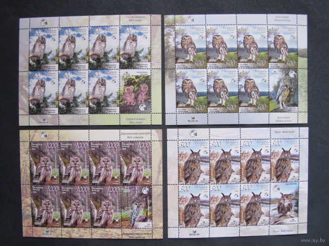 Марки РБ. 4 МЛ Совы Беларуси (##698-701)