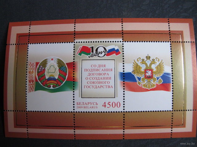 Марки РБ. Блок 71. 10 лет со дня подписания Договора о создании Союзного государства