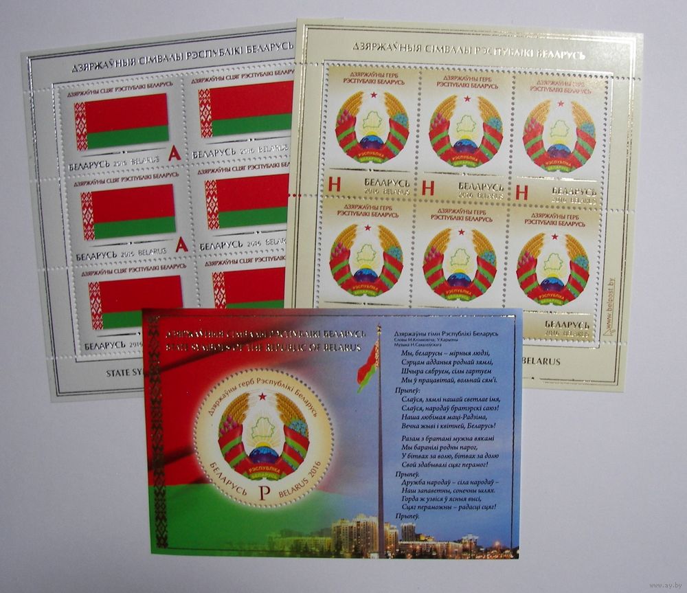 Марки РБ. Гос. символы. Республики Беларусь. 2 листа + бок. 2016