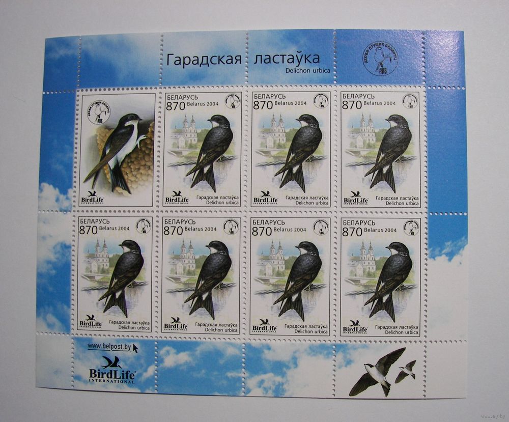 Марки РБ. Птица года. Ласточка. Лист. 2004.