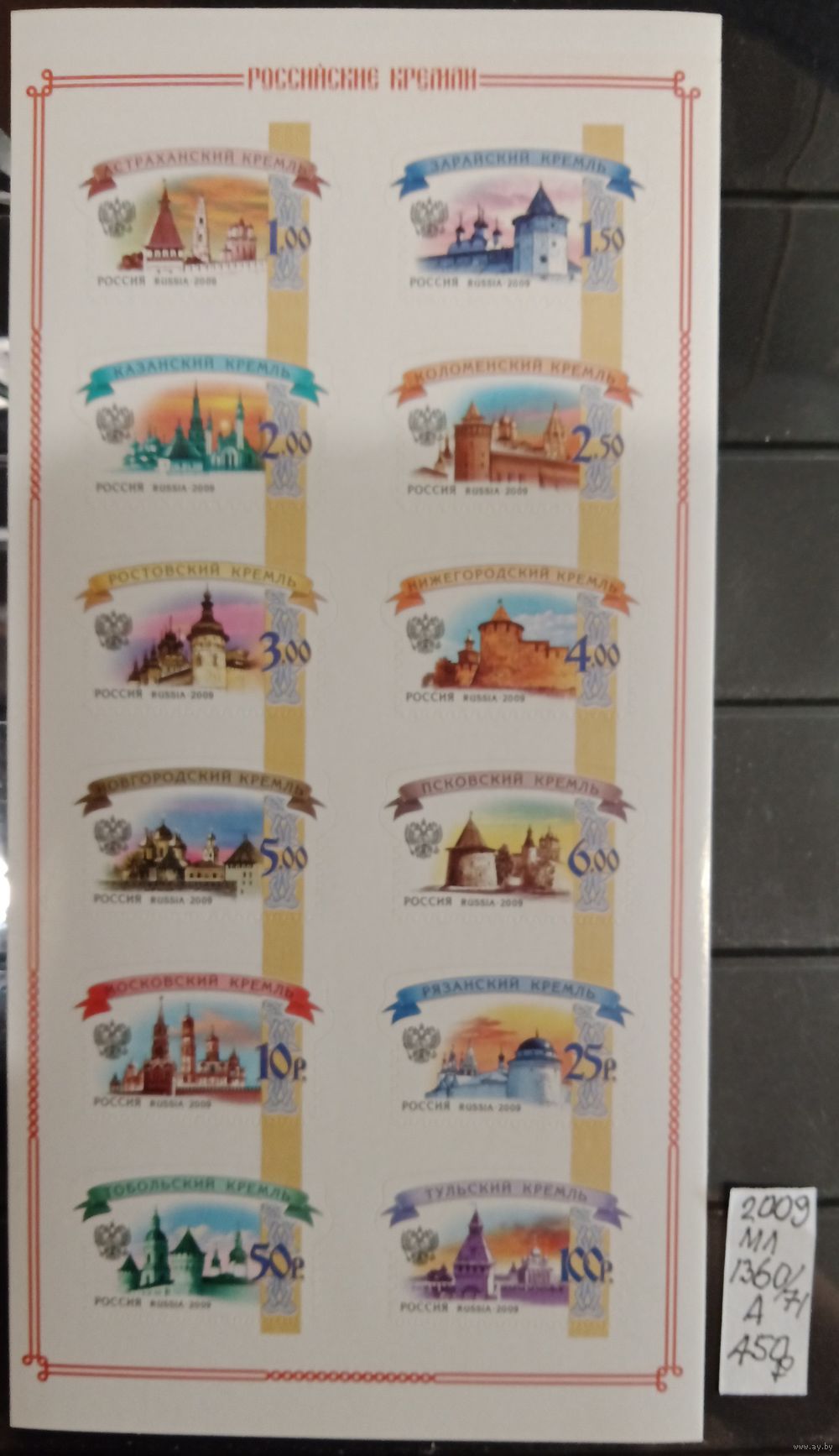Марки России шестой стандарт 2009 в малом листе СК 202 216 каталог 450 рос. руб