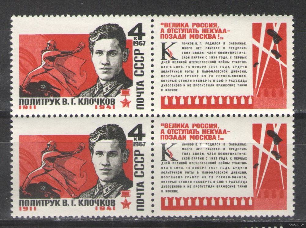 Предлагается пара марок "политрук Клочков". Михель 3361 (0.4 евро)