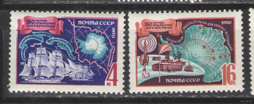 Предлагаются марки " 150 лет открытия Антарктиды ". Михель 3827/28 (1.4 евро)