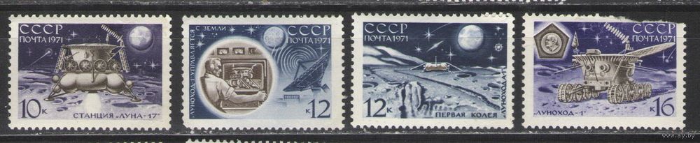 Предлагается серия марок " Исследование Луны ". Михель 3857/60 (2.5 евро) Марка ном. 16коп. с браком. Представлена как образец. Серия выставлена со скидкой.