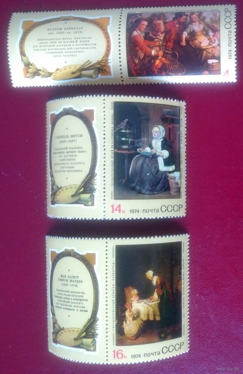 Марки СССР 1974 год. 4412, 4415, 4416. Зарубежная живопись. Марки с купоном из серии.