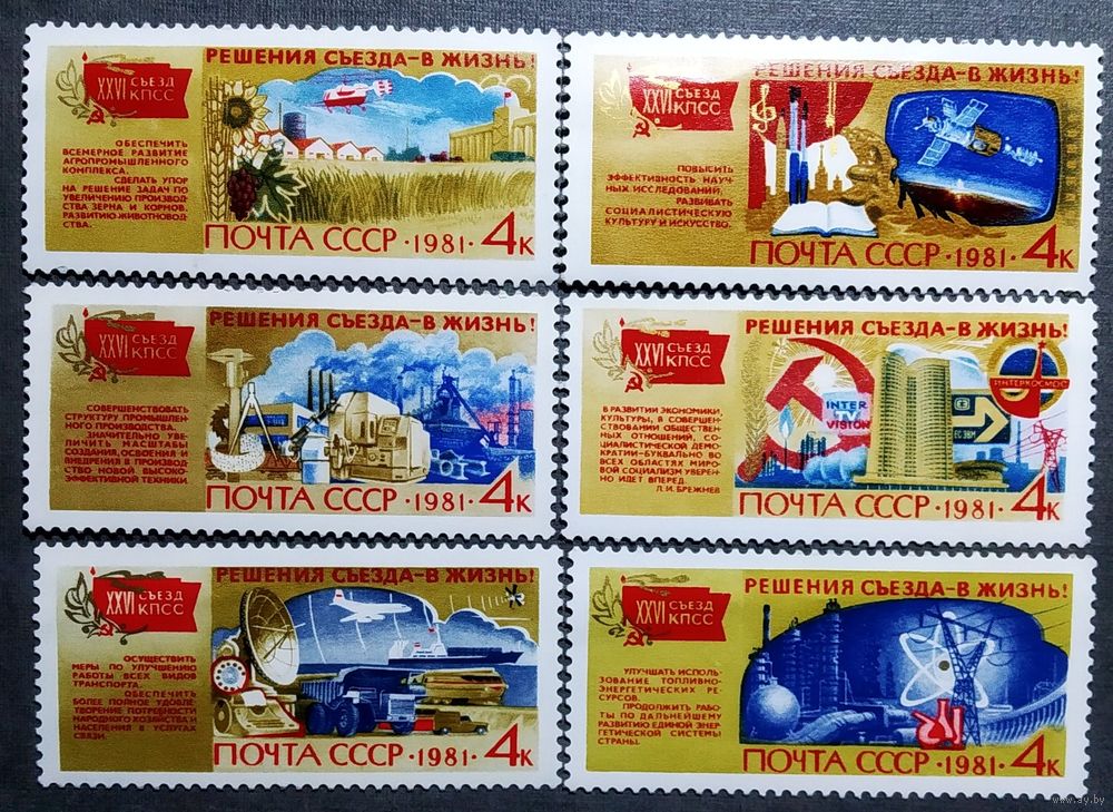 Марки СССР 1981 год Решения съезда - в жизнь!