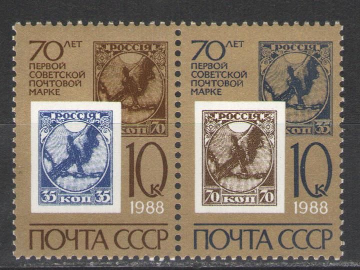 Предлагается сцепка " 70 лет первой советской почтовой марке" Михель 5786/87 (0.7 евро)