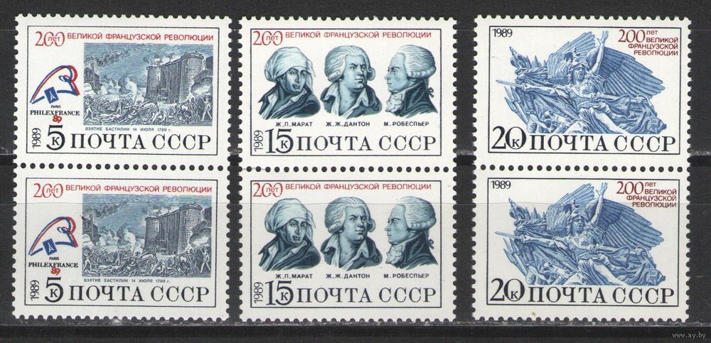 Марки СССР. 1989г. 200 лет французской революции (пары)