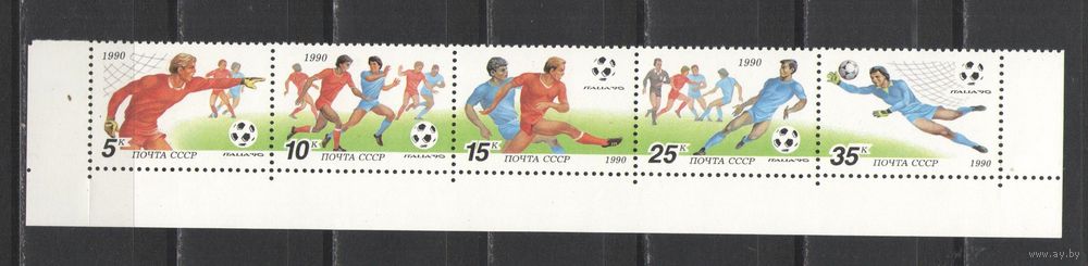 Предлагается сцепка (нижняя часть листа) серии СССР 1990г. Михель 6088/92 (2.5 евро).