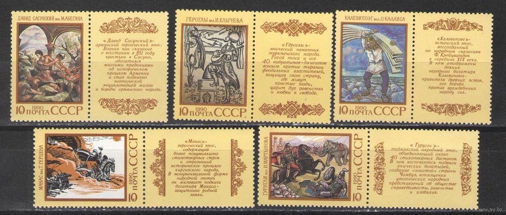 Предлагается серия марок " Эпос народов СССР" Михель 6082/86 (1.6 евро)