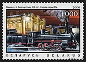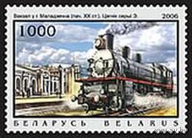 Марки "Вокзал в г. Молодечно. Нач. 20в. Паровоз серии Э", "Вокзал в г. Бресте. Нач. 20в. Паровоз серии ОВ"