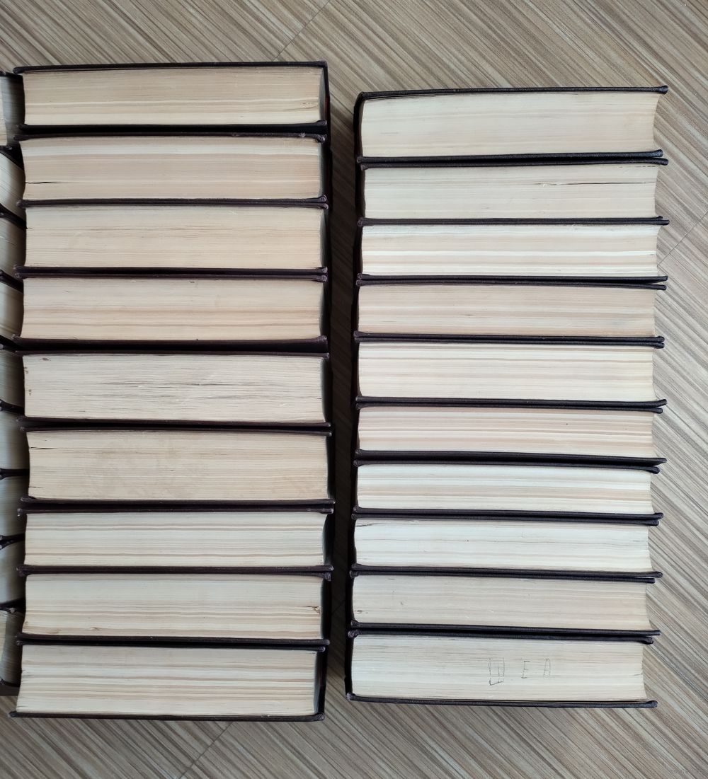 | состояние блоков страниц практически всех томов- очень хорошее, не смотря на то, что книги библиотечные с атрибутами, в трёх томах есть чуть выделений карандашом | |