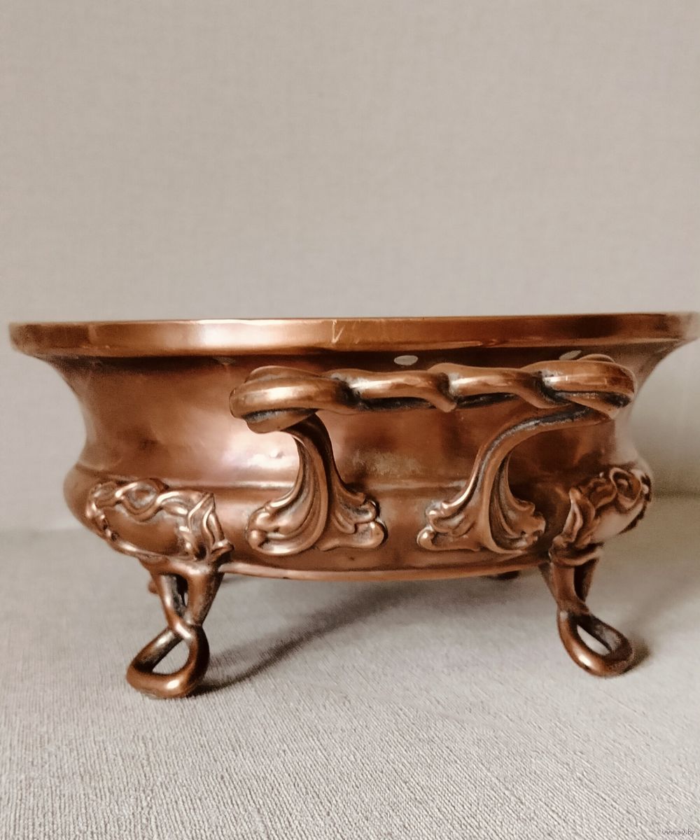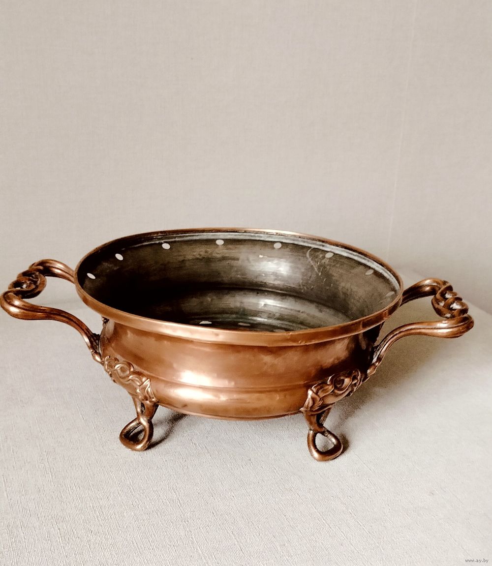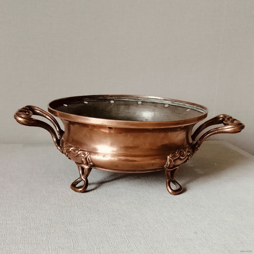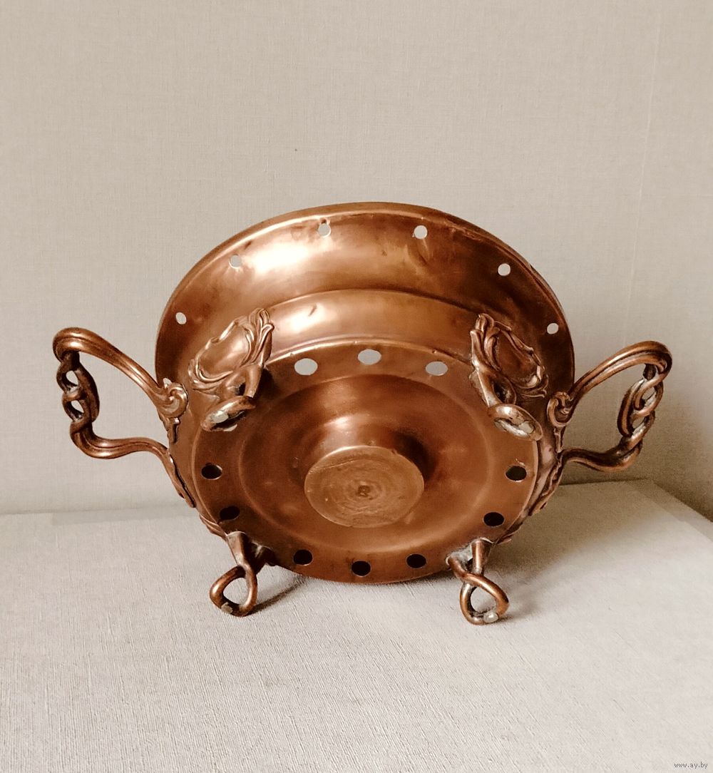 Антикварная французская настольная подставка для подогрева блюд, жаровня, мармит. Ставим на подставку кастрюлю с готовым блюдом, предварительно заложив угли или свечу (1-2) в мармит (подставку). Идеально подойдет в частном доме или на даче. Так же может использоваться как подставка для цветов - кашпо. Диаметр 23,5 см ( с ручками 34 см), высота 11 см = 280 руб