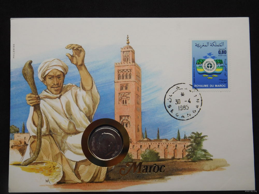 Марокко 1 дирхам 1974 г Королевство Король Хасан II конверт первого дня КПД