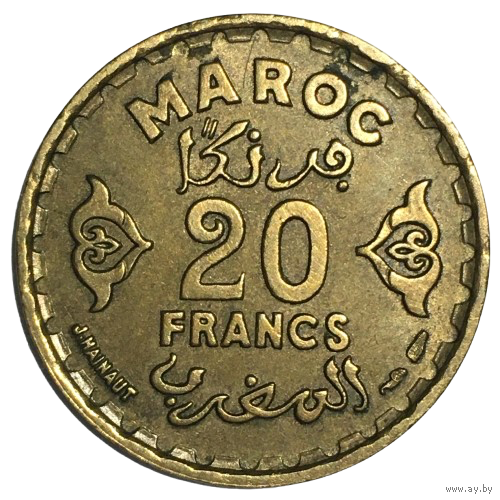 Марокко 20 франков, 1952