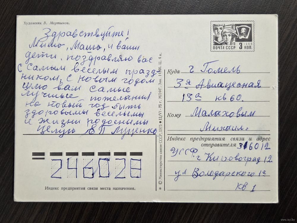 Мартынов С Новым годом 1975 подписанная открытка СССР