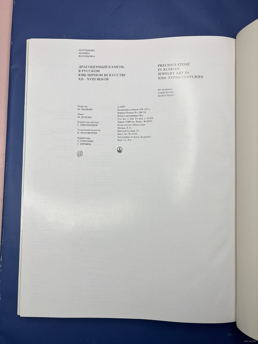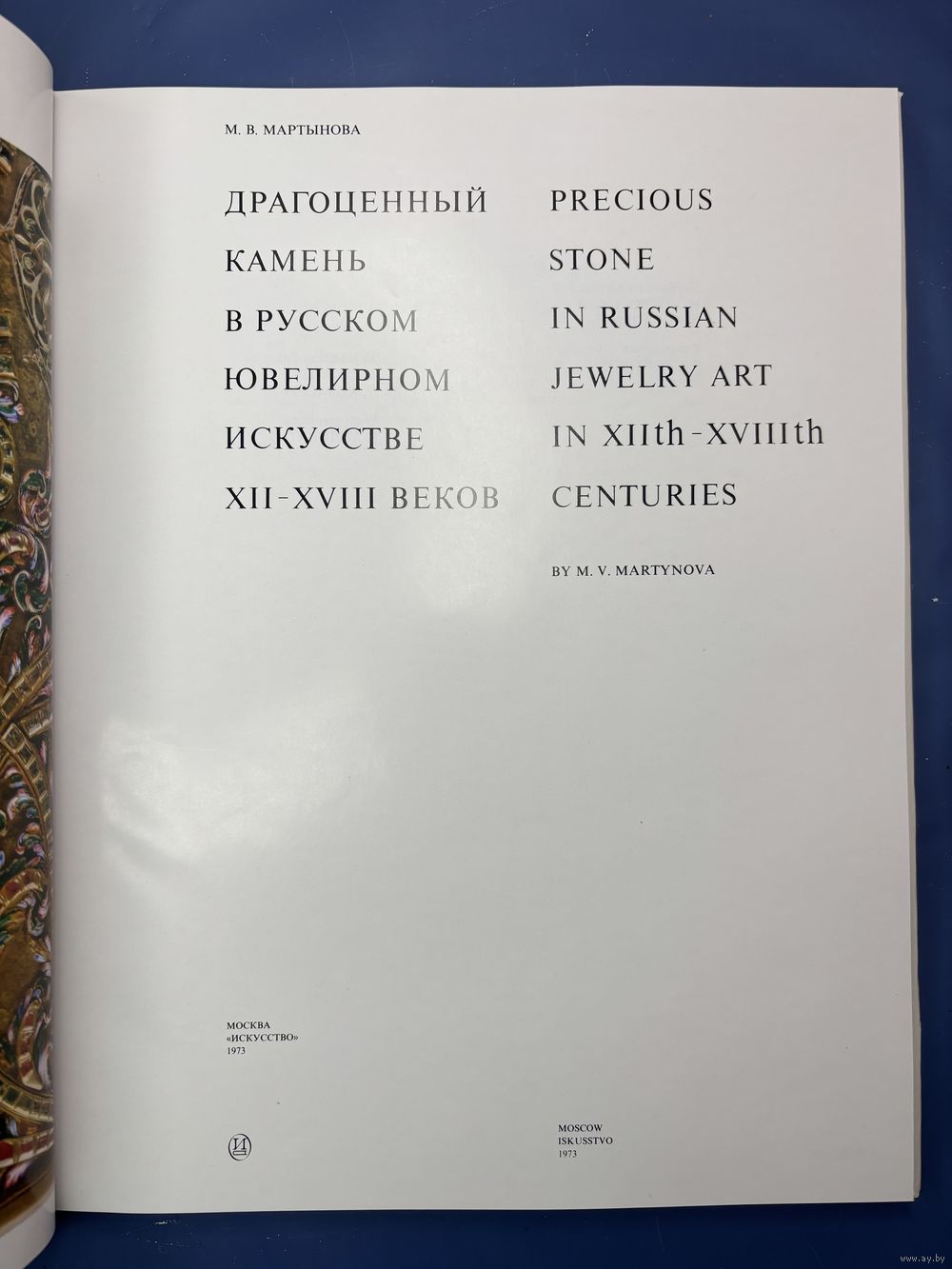 Мартынова, М.В. Драгоценный камень в русском ювелирном искусстве XII-XVIII веков. М.: Искусство, 1973. 45 с., 51 л. ил., [3] л. ил. 34,5×27,3 см.