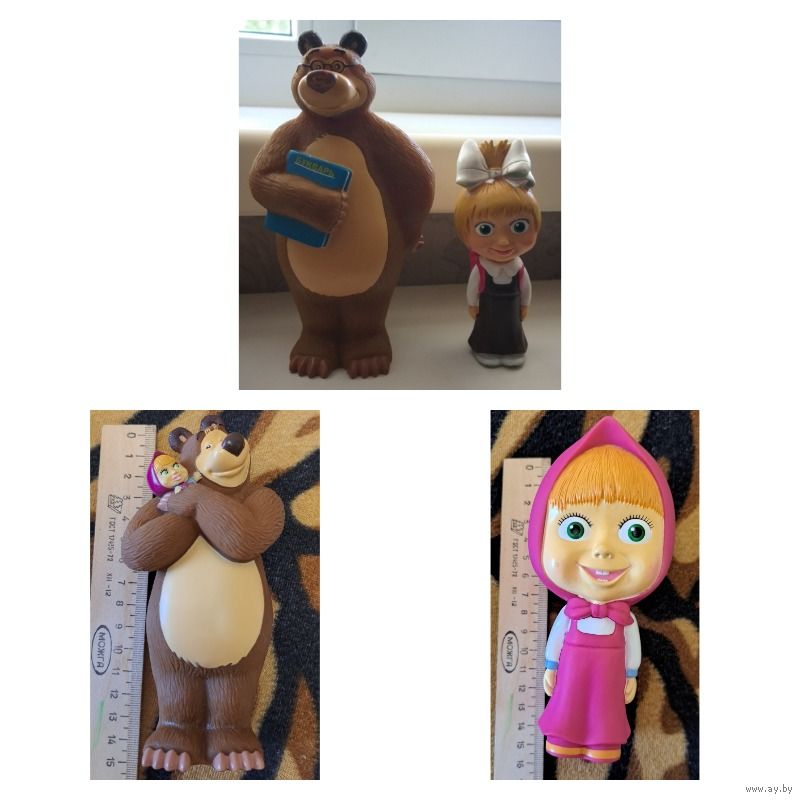 1)Маша и Медведь, резиновые игрушки, б.ув идеальном состоянии, высота Медведя-13.5см, Маши-10см.