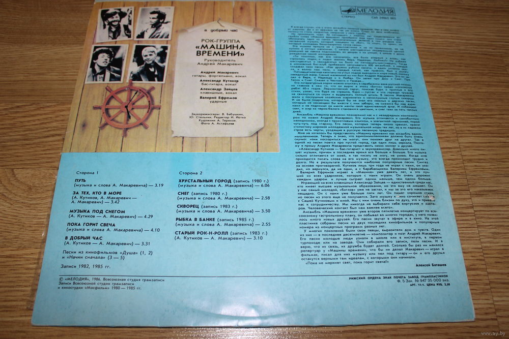 Music By – А. Кутиков* (треков: A2, A3, A5, B5), А. Макаревич* (треков: A1, A4, B1 to B4)