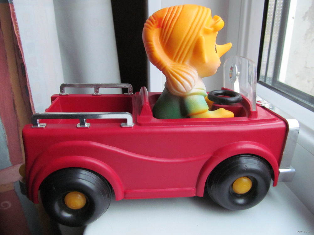 Игрушка электромеханическая, СССР, из серии "Весёлые человечки в автомобиле" , Буратино. Рабочая.