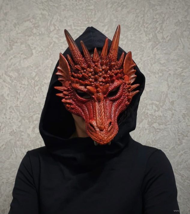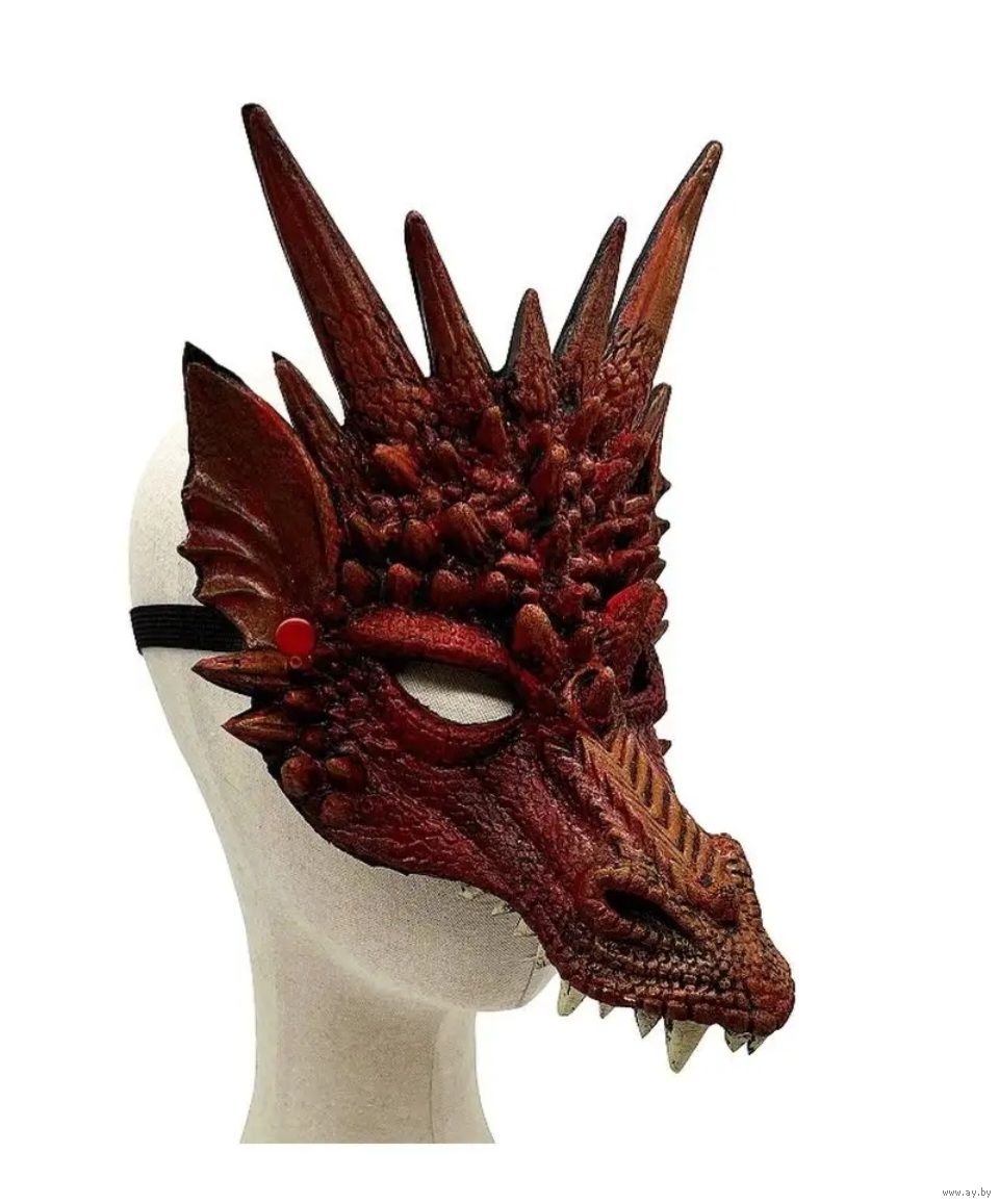 Маска карнавальная Дракон, цвет красный, материал: вспененый пластик, крепление в виде резинки. Размер: 31 х 26 см. Использовалась один раз в качестве аксессуара для фотосессии. Подходит взрослым и детям.