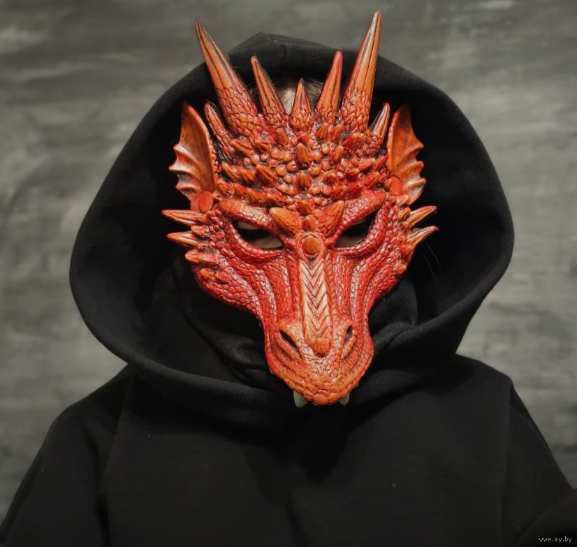 Маска карнавальная Дракон, цвет красный, материал: вспененый пластик, крепление в виде резинки. Размер: 31 х 26 см. Использовалась один раз в качестве аксессуара для фотосессии. Подходит взрослым и детям.